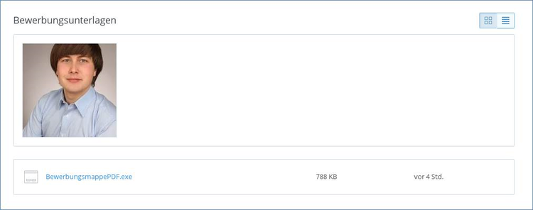 When following the link, an EXE file is downloaded. The German file name translates to ‚application_portfolio-packed.exe’.