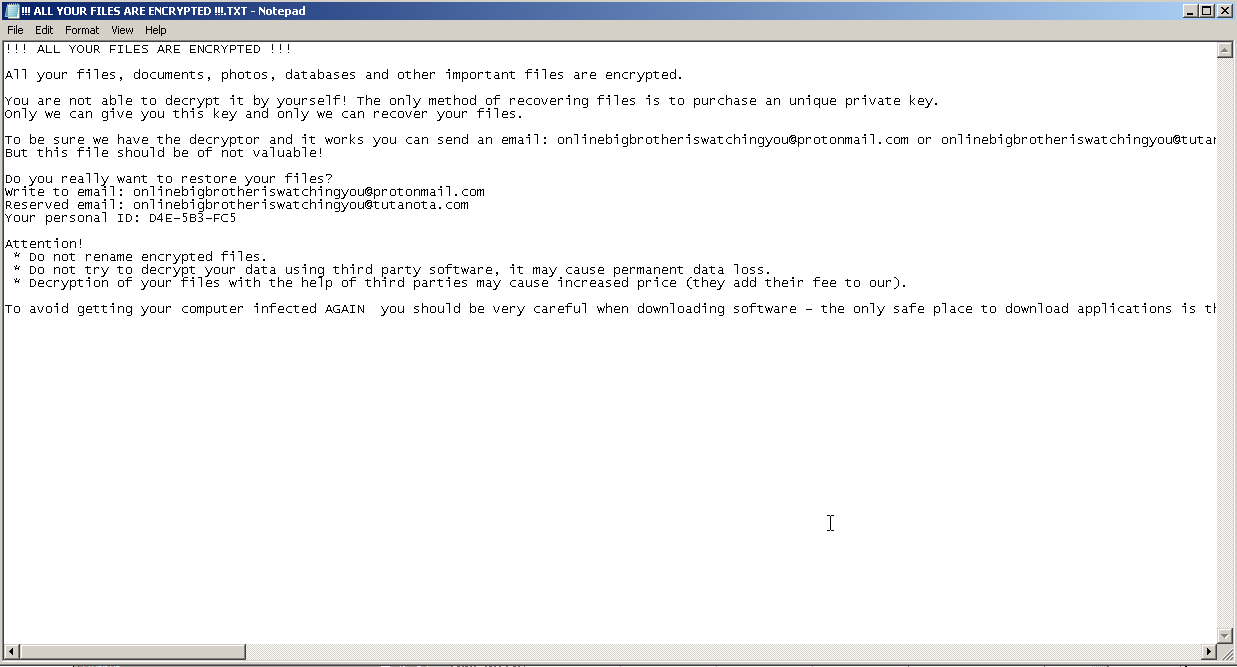 One of the evident changes in Zeppelin is that the infection coverage is wider as it infects more filetypes than Buran. For instance, Zeppelin not only infects document files but also executable files with “.exe” extension. This makes Zeppelin more destructive than Buran as it renders the victim’s machine pretty much unusable by encrypting all software installed, unless the installation path is included in the whitelisted file paths. Every Zeppelin encrypted file can easily be distinguished by an infection marker “ZEPPELIN” that can be seen at the beginning of the file’s content. This infection marker makes it distinct from Buran, but at the same time an indication that they are from the same family as they both leave infection markers at the start of each file using the same encryption routine. After all files in the directory are encrypted, a ransom note in text file format will be dropped. Lastly, it will open a ransom note using notepad.exe to inform the victim of the infection.